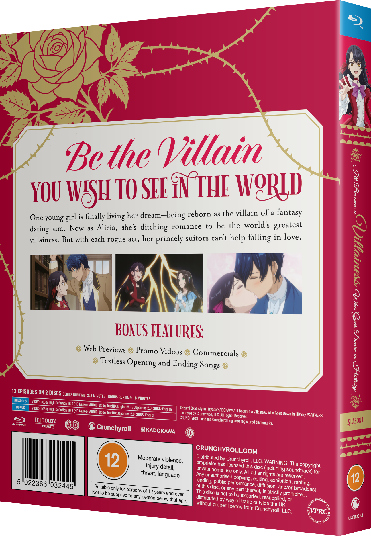 One young girl is finally living her dream - being reborn as the villain of a fantasy dating sim. Now as Alicia, she's ditching romance to be the world's greatest villainess. But with each rogue act, her princely suitors can't help falling in love.