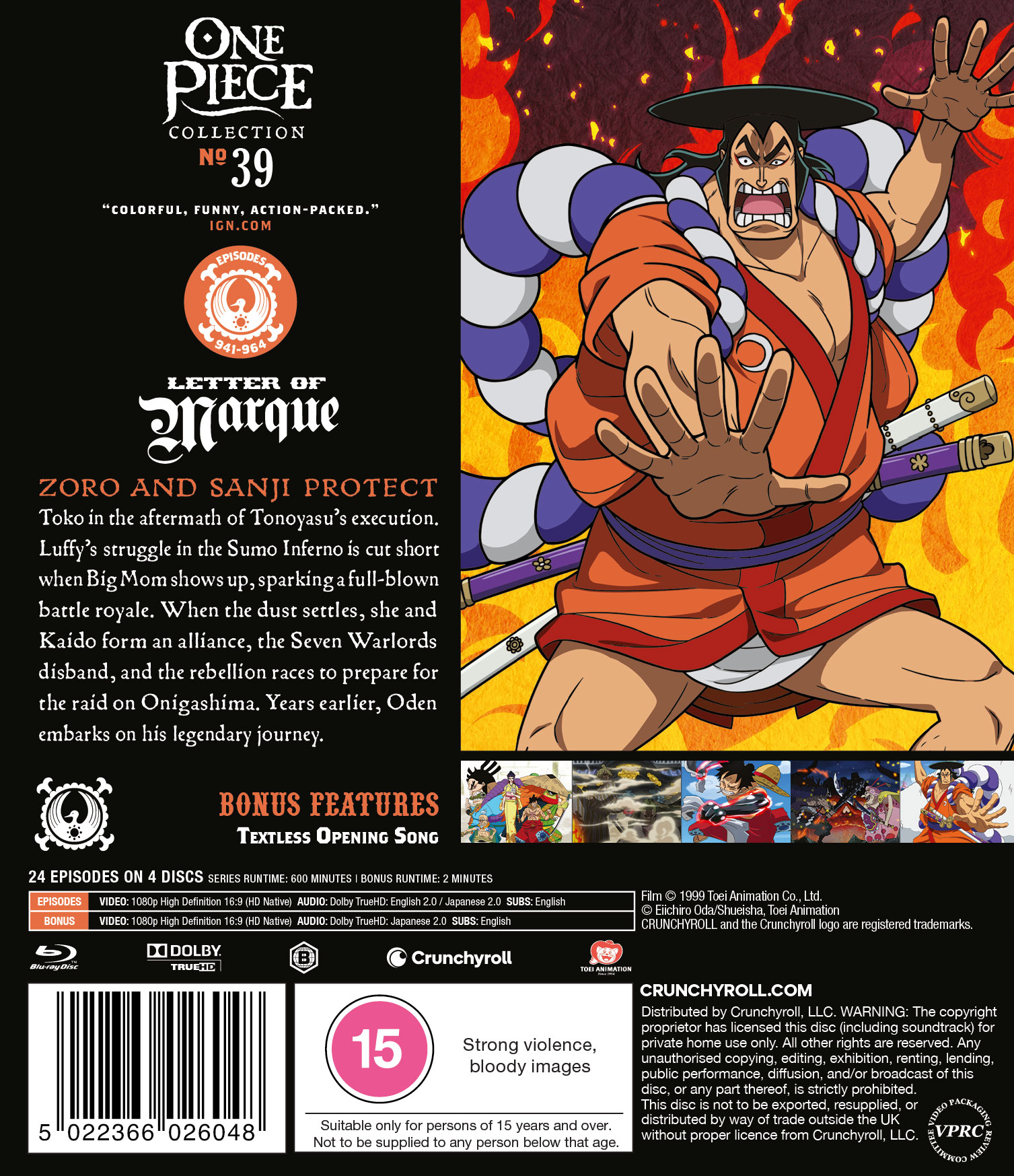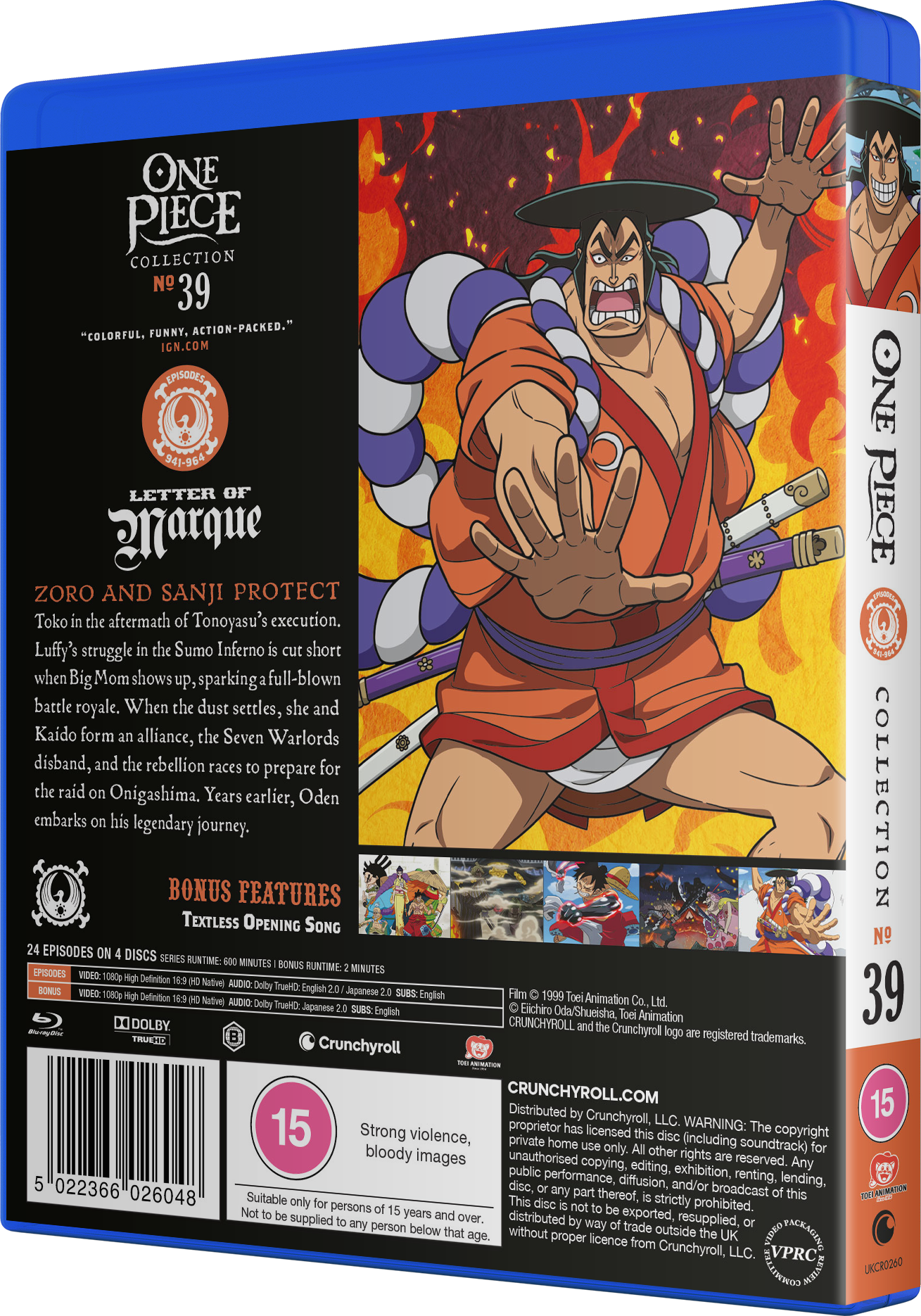 Zoro and Sanji protect Toko in the aftermath of Tonoyasu's execution. Luffy's struggle in the Sumo Inferno is cut short when Big Mom shows up, sparking a full-blown battle royale. When the dust settles, she and Kaido form an alliance, the Seven Warlords disband, and the rebellion races to prepare for the raid on Onigashima. Years earlier, Oden embarks on his legendary journey.