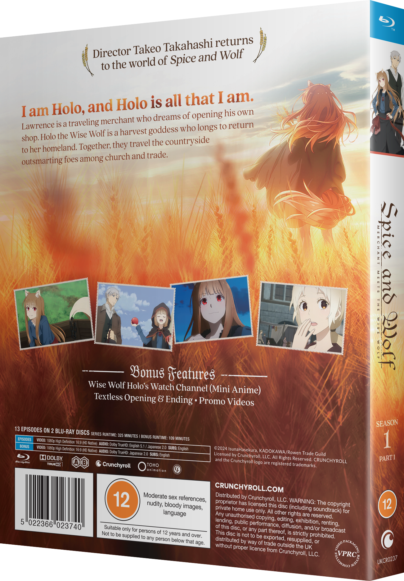 Lawrence is a travelling merchant who dreams of opening his own shop. Holo the Wise Wolf is a harvest goddess who longs to return to her homeland. Together, they travel the countryside outsmarting foes among church and trade.