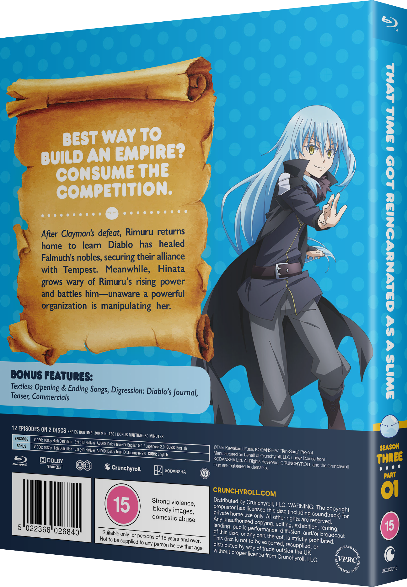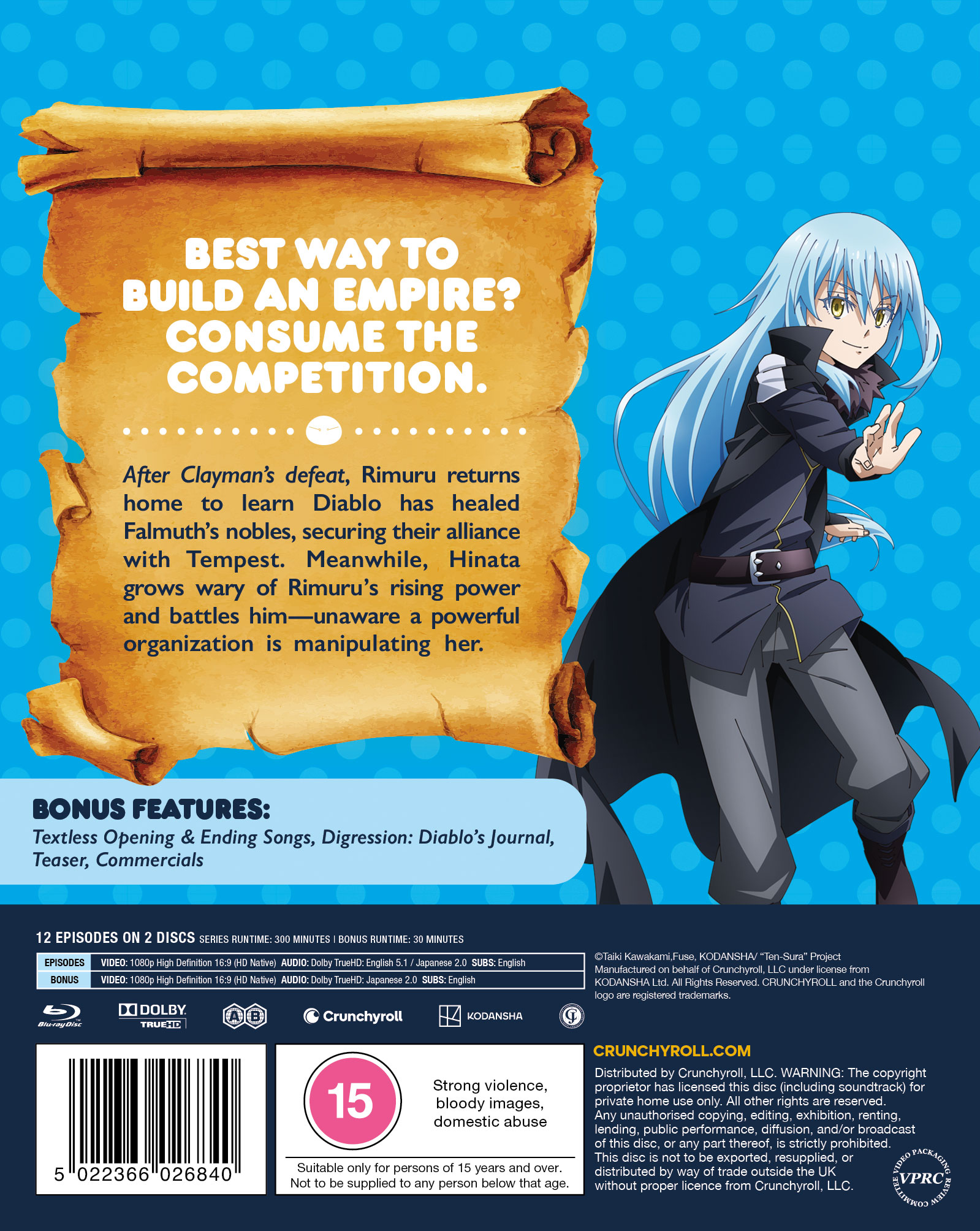 After Clayman’s defeat, Rimuru returns home to learn Diablo has healed Falmuth’s nobles, securing their alliance with Tempest. Meanwhile, Hinata grows wary of Rimuru’s rising power and battles him - unaware a powerful organisation is manipulating her.
