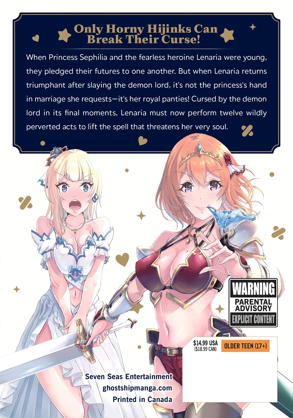 When Princess Sephilia and the fearless heroine Lenaria were young, they pledged their futures to one another. But when Lenaria returns triumphant after slaying the demon lord, it's not the princess's hand in marriage she requests - it's her royal panties! Cursed by the demon lord in its final moments, Lenaria must now perform twelve wildly perverted acts to lift the spell that threatens her very soul.