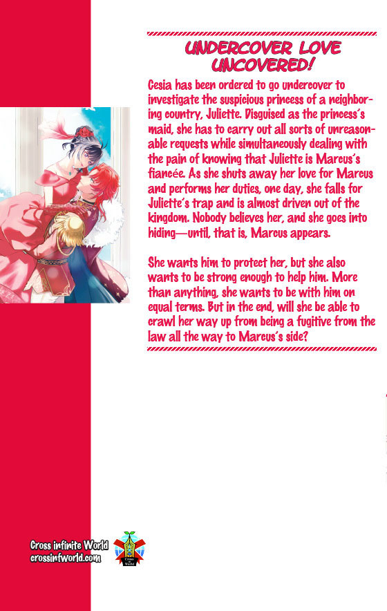 Cesia has been ordered to go undercover to investigate the suspicious princess of a neighboring country, Juliette. Disguised as the princess's maid, she has to carry out all sorts of unreasonable requests while simultaneously dealing with the pain of knowing that Juliette is Marcus's fiancée. As she shuts away her love for Marcus and performs her duties, one day, she falls for Juliette's trap and is almost driven out of the kingdom. Nobody believes her, and she goes into hiding—until, that is, Marcus appears.