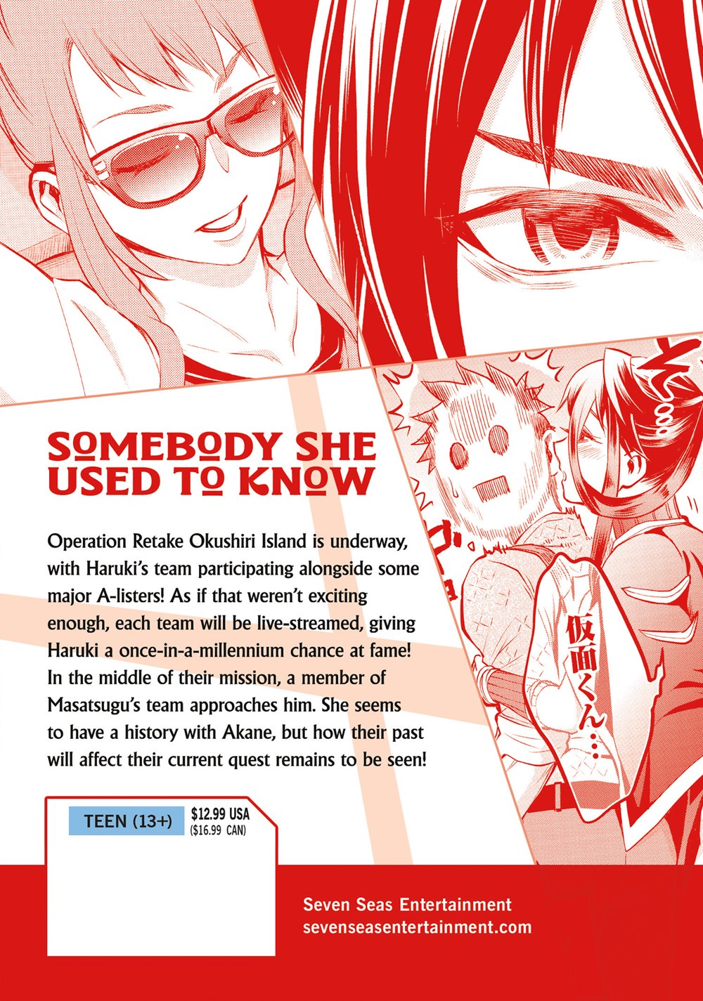 Operation Retake Okushiri Island is underway, with Haruki's team participating alongside some major A-listers! As if that weren't exciting enough, each team will be live-streamed, giving Haruki a once-in-a-millennium chance at fame! In the middle of their mission, a member of Masatsugu's team approaches him. She seems to have a history with Akane, but how their past will affect their current quest remains to be seen!