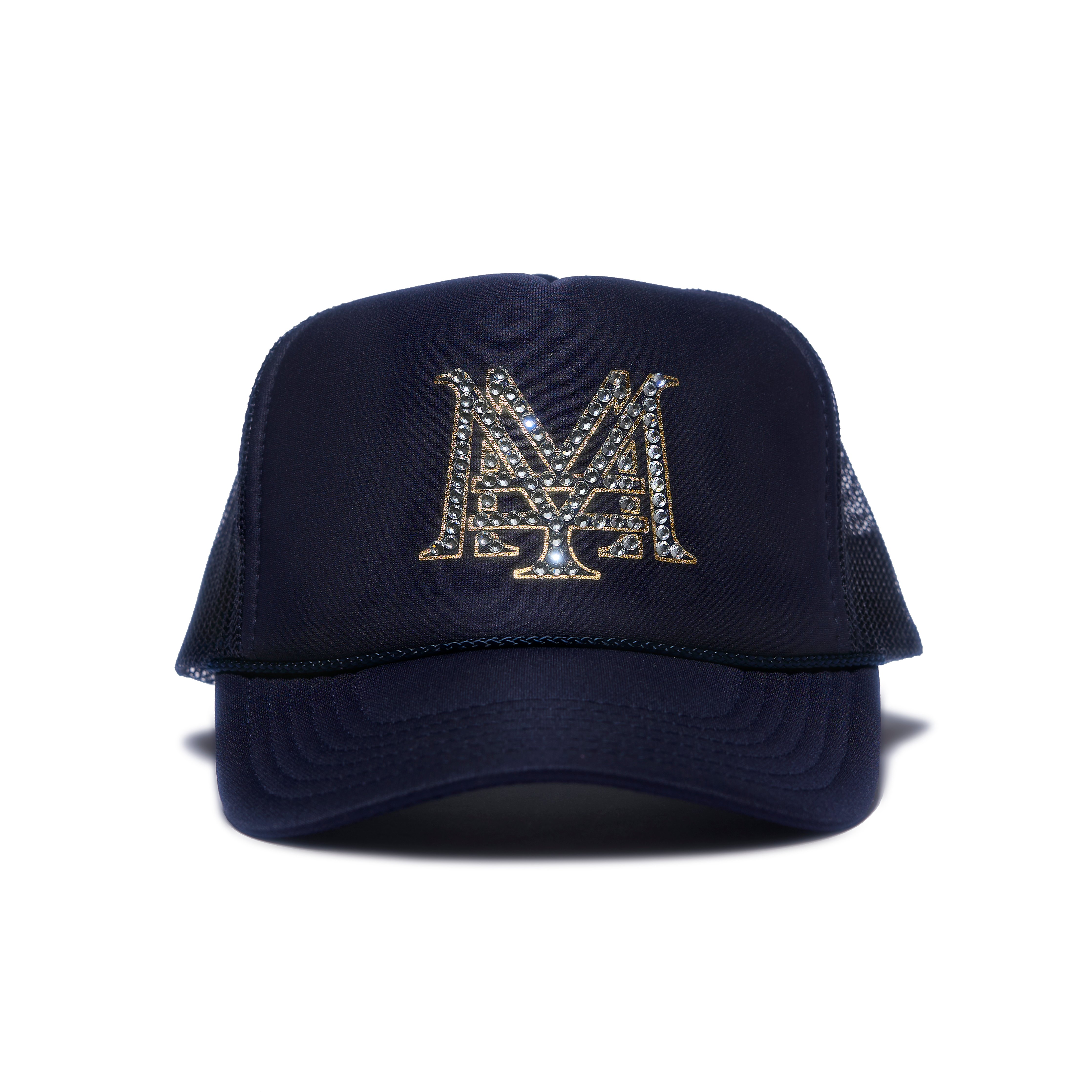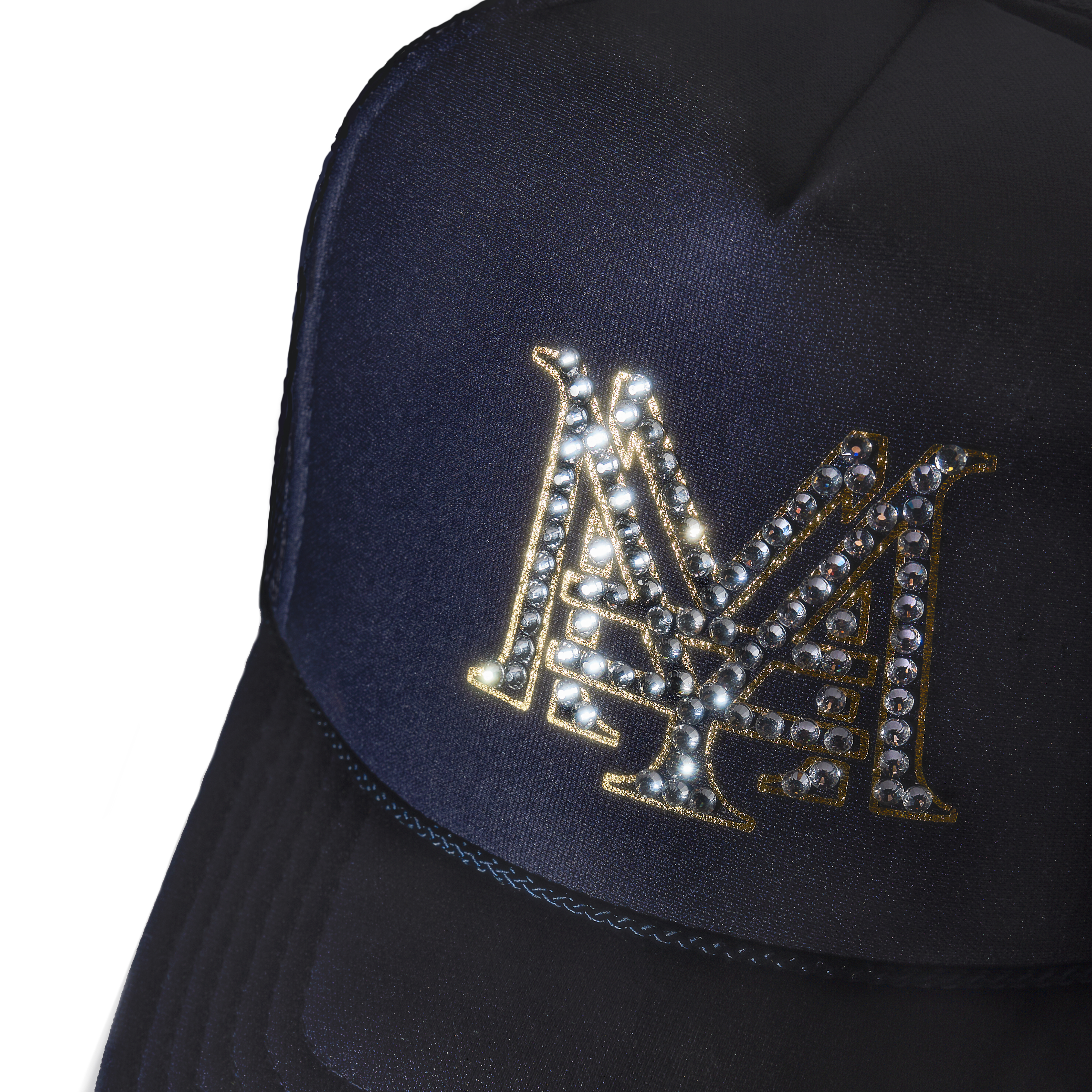 This isn’t just a hat; it’s a headline. Step out with a bold look wearing this hand-set rhinestone hat, where anime meets arena. The front symbol fuses Mercedes Moné’s signature "M" with a yen mark, giving a nod to her name and her impact. It shines under stage lights or streetlamps alike, radiating CEO energy from crown to brim.