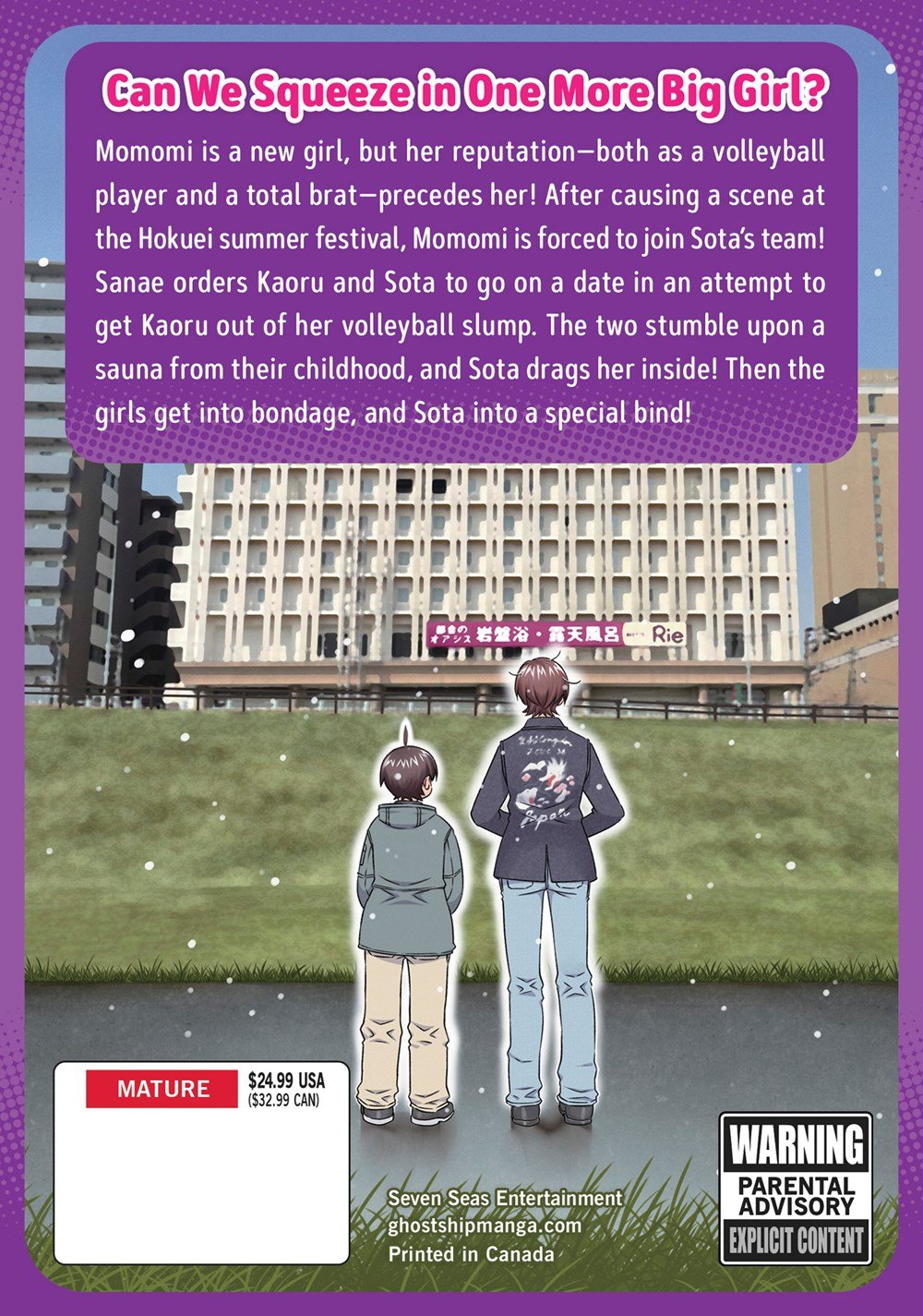Momomi is a new girl, but her reputation—both as a volleyball player and a total brat—precedes her! After causing a scene at the Hokuei summer festival, Momomi is forced to join Sota's team! Sanae orders Kaoru and Sota to go on a date in an attempt to get Kaoru out of her volleyball slump. The two stumble upon a sauna from their childhood, and Sota drags her inside! Then the girls get into bondage, and Sota into a special bind!