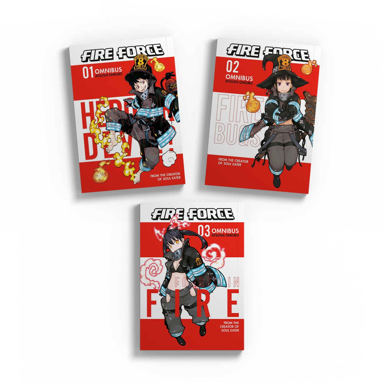 Fire Force manga omnibus volume 1 collects volumes 1-3 in a larger sized omnibus format and features story and art by Atsushi Ohkubo, the author of Soul Eater.
