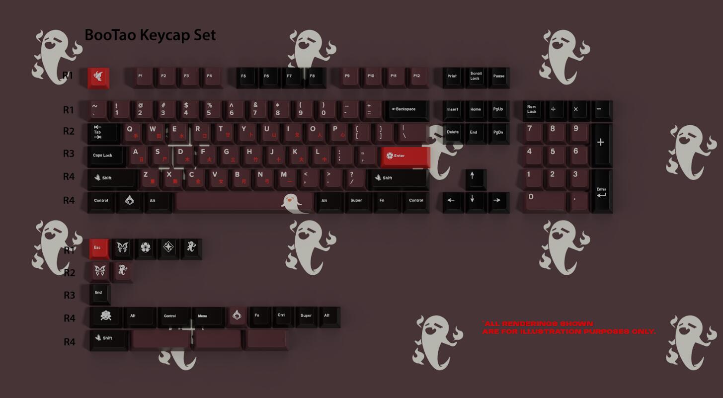 Upgrade your keyboard with the Boo Tao Keycap Base Kit from "Genshin Impact." Inspired by Hu Tao’s playful and mischievous nature, these keycaps add a touch of fun to your typing experience. Bring the spirit of Hu Tao’s antics to your desk!