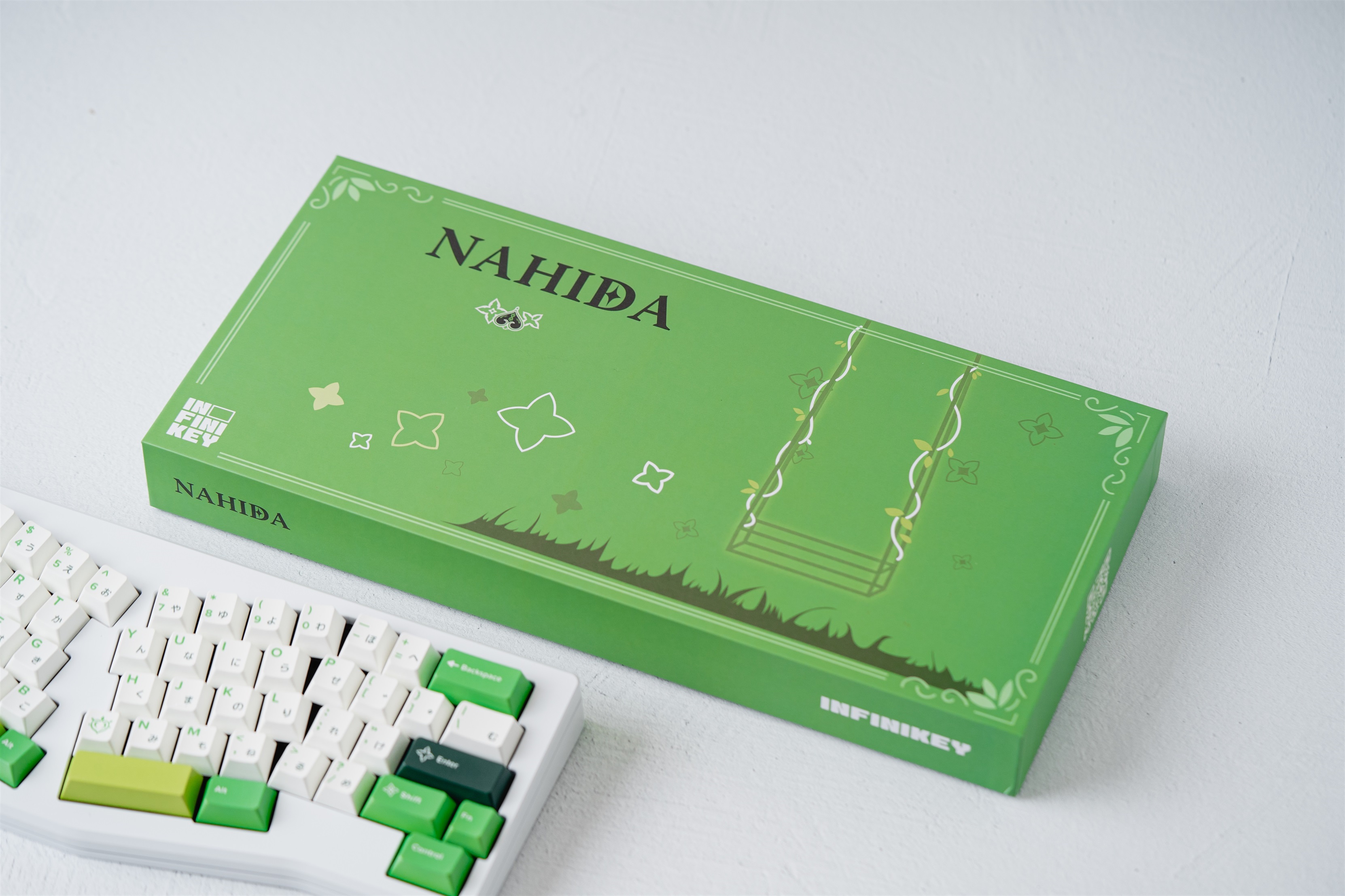 Enhance your keyboard with the Nahida Keycap Base Kit from "Genshin Impact." These keycaps capture Nahida’s color palette, infusing your keyboard with a touch of Dendro. Type with the same finesse as the Dendro Archon herself!