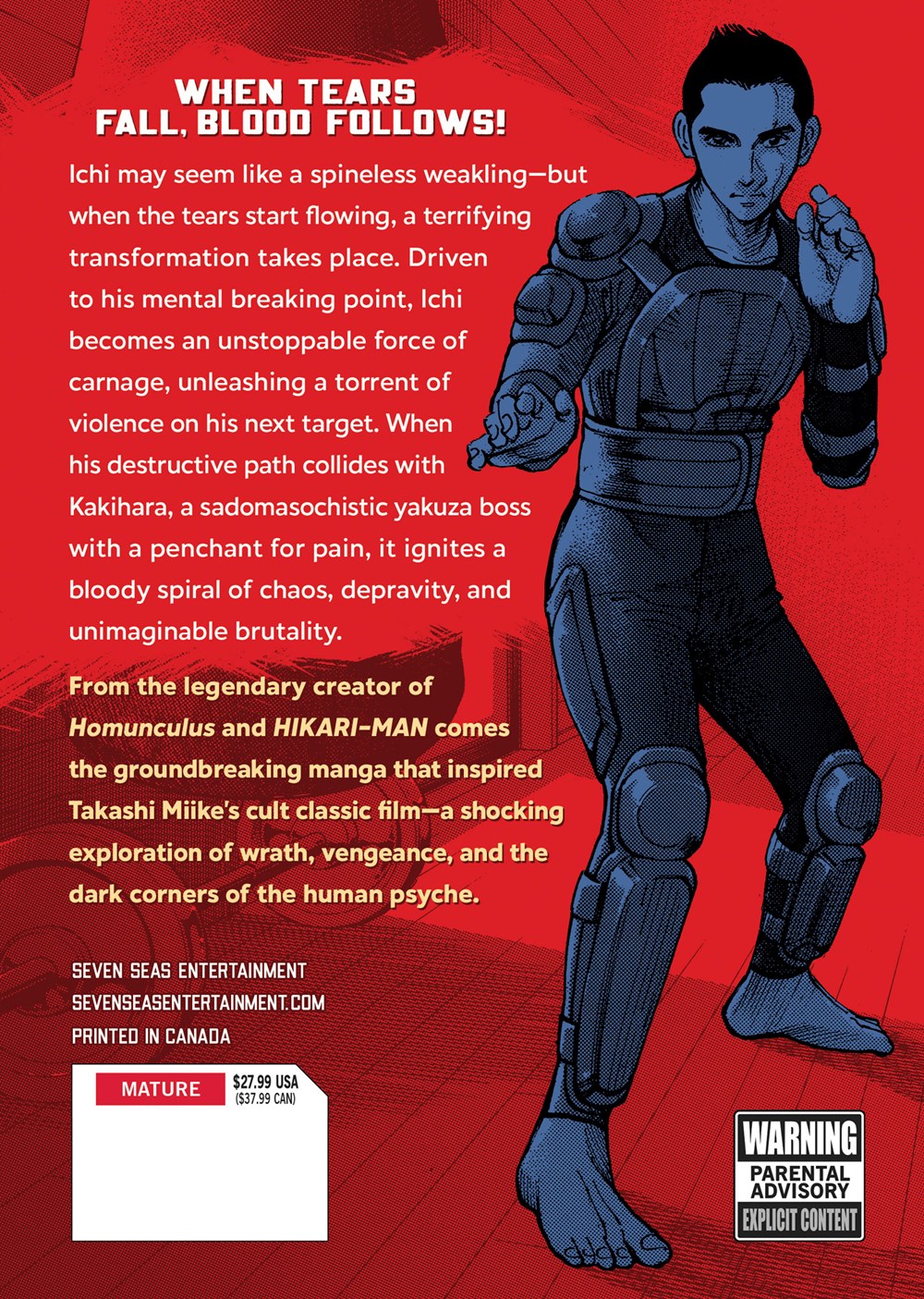 Ichi may seem like a spineless weakling—but when the tears start flowing, a terrifying transformation takes place. Driven to his mental breaking point, Ichi becomes an unstoppable force of carnage, unleashing a torrent of violence on his next target. When his destructive path collides with Kakihara, a sadomasochistic yakuza boss with a penchant for pain, it ignites a bloody spiral of chaos, depravity, and unimaginable brutality.