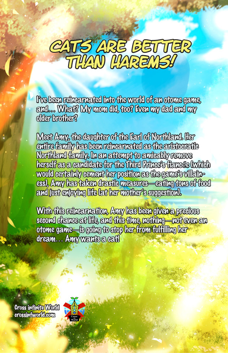 With this reincarnation, Amy has been given a precious second chance at life, and this time, nothing—not even an otome game—is going to stop her from fulfilling her dream… Amy wants a cat!