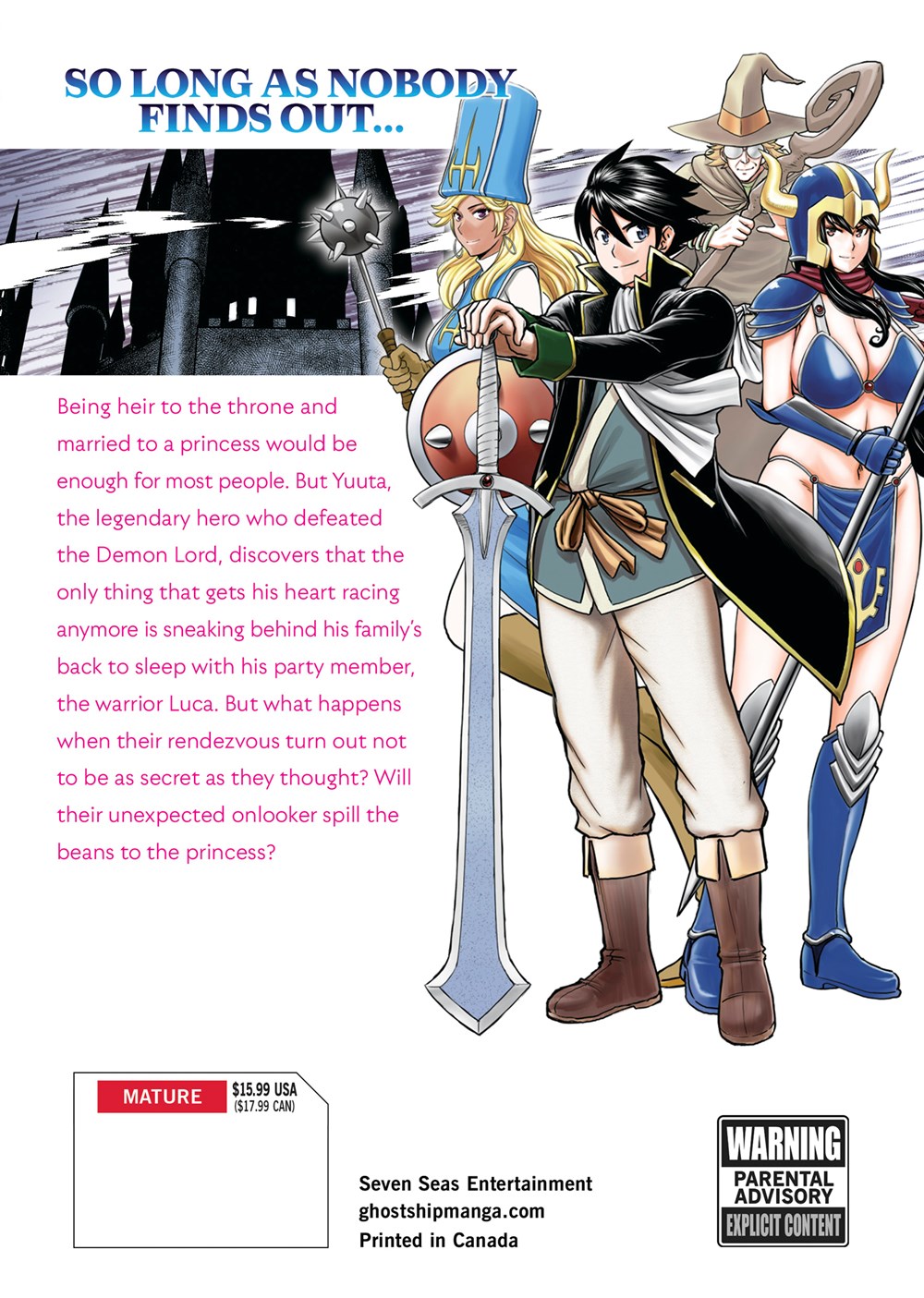 Being heir to the throne and married to a princess would be enough for most people. But Yuuta, the legendary hero who defeated the Demon Lord, discovers that the only thing that gets his heart racing anymore is sneaking behind his family's back to sleep with his party member, the warrior Luca. But what happens when their rendezvous turns out not to be as secret as they thought? Will their unexpected onlooker spill the beans to the princess?