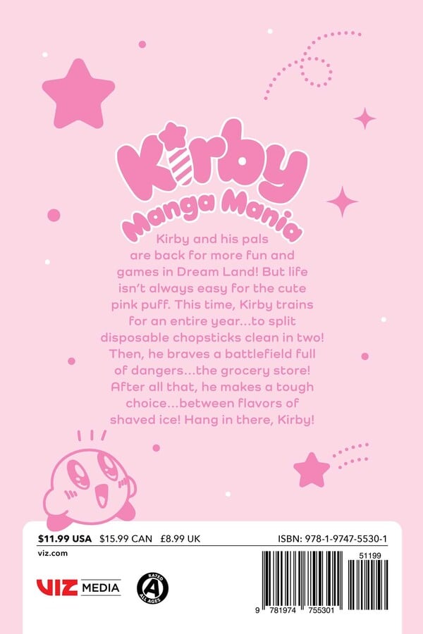 Kirby and his pals are back for more fun and games in Dream Land! But life isn't always easy for the cute pink puff. This time, Kirby trains for an entire year… to split disposable chopsticks clean in two! Then, he braves a battlefield full of dangers… the grocery store! After all that, he makes a tough choice… between flavors of shaved ice! Hang in there, Kirby!