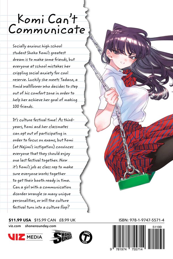 It's culture festival time! As third-years, Komi and her classmates can opt out of participating in order to focus on exams, but Komi (at Najimi's instigation) convinces everyone that they should enjoy one last festival together. Now it's Komi's job as class rep to make sure everyone works together to get their booth ready in time. Can a girl with a communication disorder wrangle so many unique personalities, or will the culture festival turn into a culture flop?