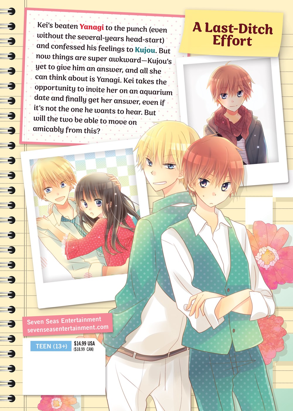 Kei's beaten Yanagi to the punch (even without the several-years head-start) and confessed his feelings to Kujou. But now things are super awkward - Kujou's yet to give him an answer, and all she can think about is Yanagi. Kei takes the opportunity to invite her on an aquarium date and finally get her answer, even if it's not the one he wants to hear. But will the two be able to move on amicably from this?