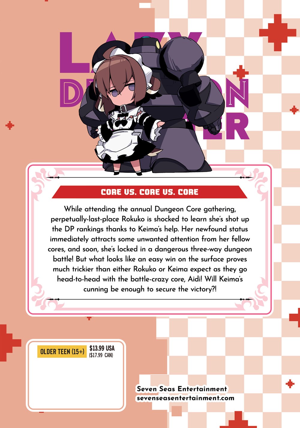 While attending the annual Dungeon Core gathering, perpetually-last-place Rokuko is shocked to learn she's shot up the DP rankings thanks to Keima's help. Her newfound status immediately attracts some unwanted attention from her fellow cores, and soon, she's locked in a dangerous three-way dungeon battle! But what looks like an easy win on the surface proves much trickier than either Rokuko or Keima expect as they go head-to-head with the battle-crazy core, Aidi! Will Keima's cunning be enough to secure the victory?!