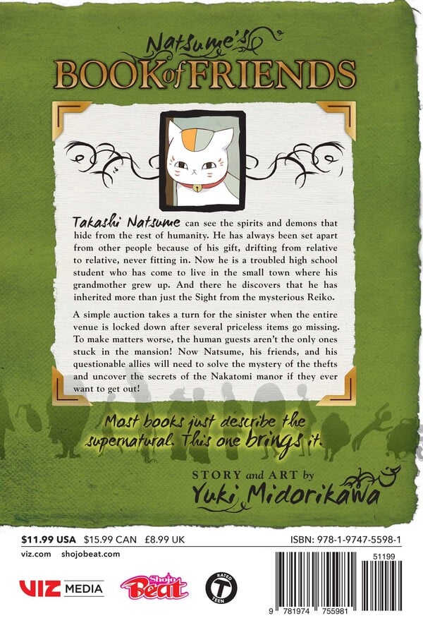 A simple auction takes a turn for the sinister when the entire venue is locked down after several priceless items go missing. To make matters worse, the human guests aren't the only ones stuck in the mansion! Now Natsume, his friends, and his questionable allies will need to solve the mystery of the thefts and uncover the secrets of the Nakatomi house if they ever want to get out.
