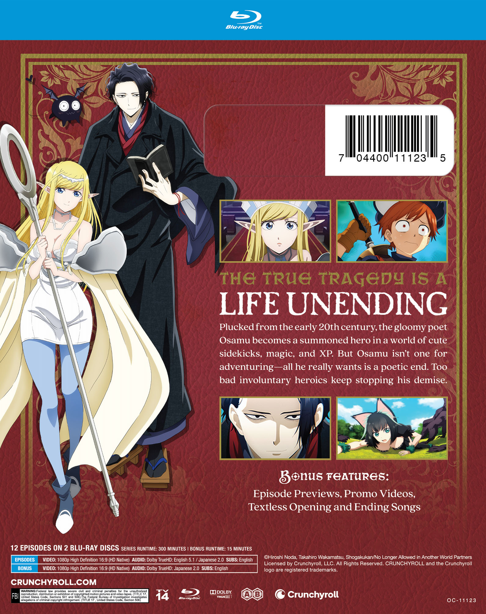 Plucked from the early 20th century, the gloomy poet Osamu becomes a summoned hero in a world of cute sidekicks, magic, and XP. But Osamu isn’t one for adventuring - all he really wants is a poetic end. Too bad involuntary heroics keep stopping his demise.