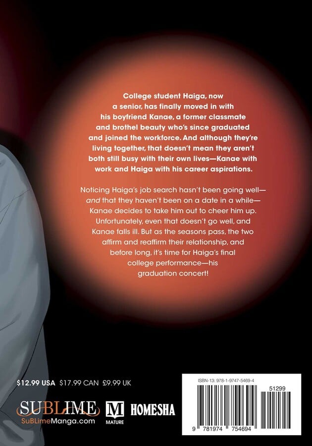 College student Haiga, now a senior, has finally moved in with his boyfriend, Kanae, a former classmate and brothel beauty who's since graduated and joined the workforce. And although they're living together, that doesn't mean they aren't both still busy with their own lives - Kanae with work and Haiga with his career aspirations.