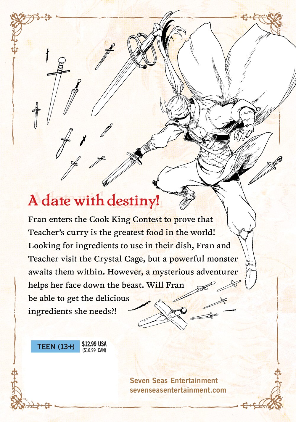 Fran enters the Cook King Contest to prove that Teacher's curry is the greatest food in the world! Looking for ingredients to use in their dish, Fran and Teacher visit the Crystal Cage, but a powerful monster awaits them within. However, a mysterious adventurer helps her face down the beast. Will Fran be able to get the delicious ingredients she needs?!