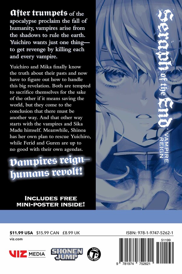 Yuichiro and Mika finally know the truth about their pasts and now have to figure out how to handle this big revelation. Both are tempted to sacrifice themselves for the sake of the other if it means saving the world, but they come to the conclusion that there must be another way. And that other way starts with the vampires and Sika Madu himself. Meanwhile, Shinoa has her own plan to rescue Yuichiro while Ferid and Guren are up to no good with their own agendas.