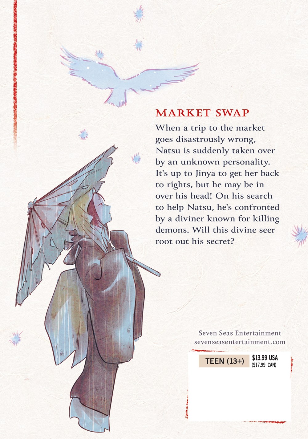 When a trip to the market goes disastrously wrong, Natsu is suddenly taken over by an unknown personality. It's up to Jinya to get her back to rights, but he may be in over his head! On his search to help Natsu, he's confronted by a diviner known for killing demons. Will this divine seer root out his secret?