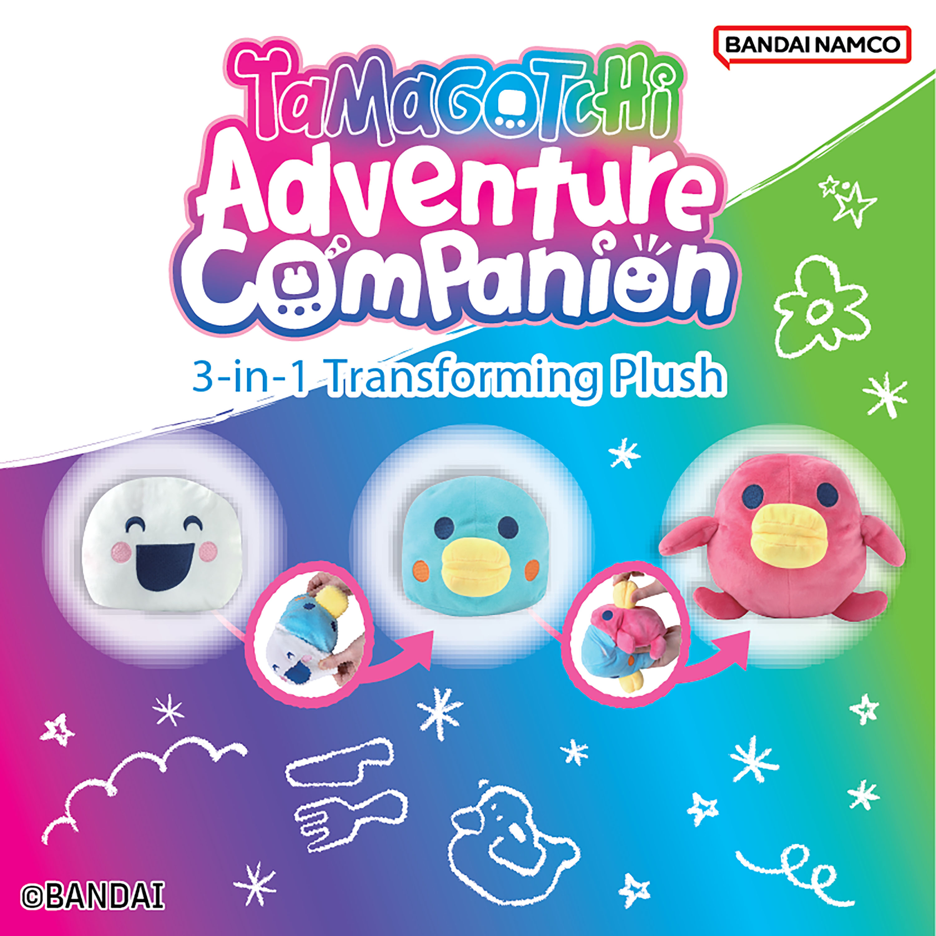 You can now take your favorite digital pet, Hashizotchi, on real-life adventures with the Tamagotchi Adventure Companion Backpack with a unique 3-in-1 plush! Just like you nurture your digital pets in the Tamagotchi device from a baby to an adult, your travel buddy also transforms from a baby to a kid to an adult!