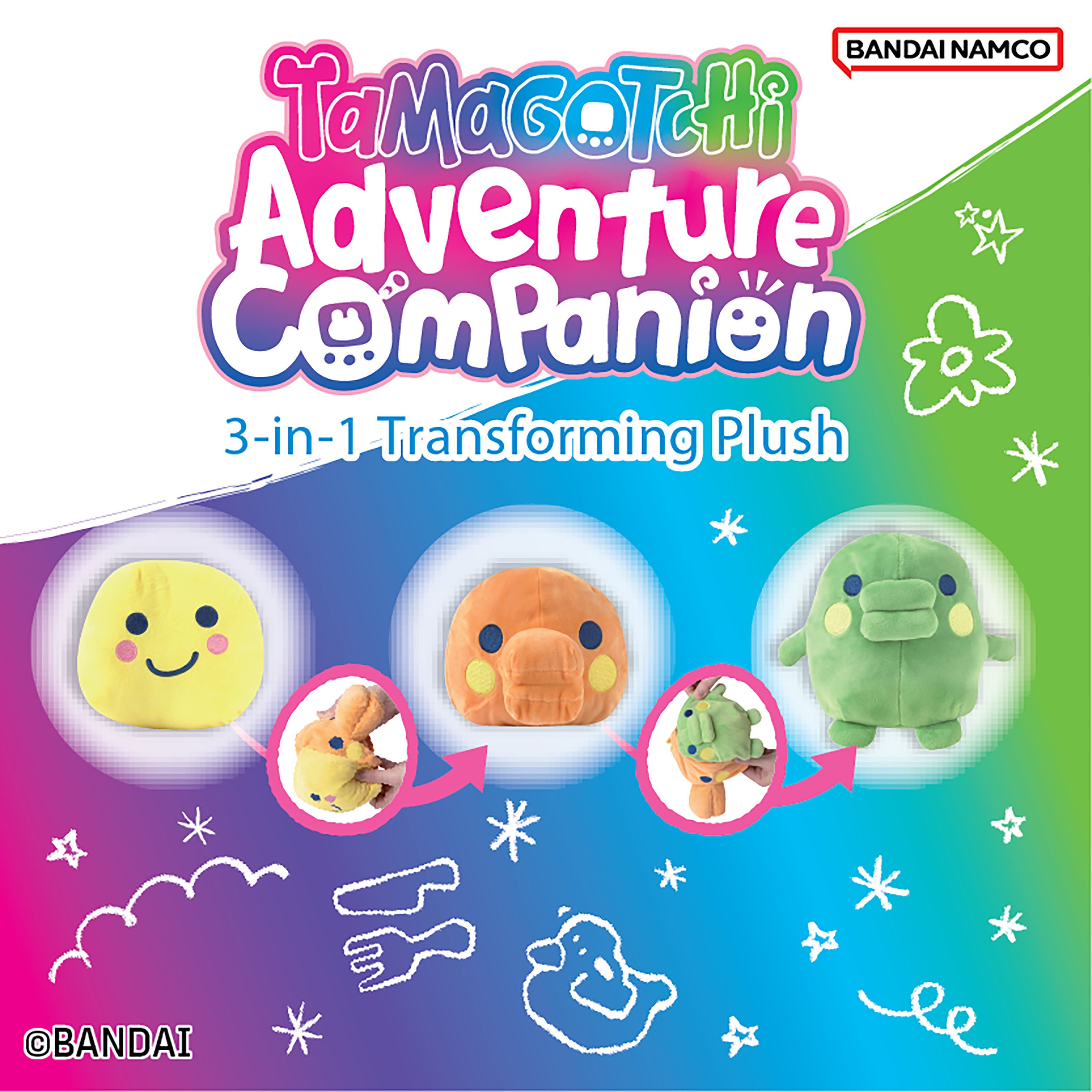 You can now take your favorite digital pet, Kuchipatchi, on real-life adventures with the Tamagotchi Adventure Companion Backpack with a unique 3-in-1 plush! Just like you nurture your digital pets in the Tamagotchi device from a baby to an adult, your travel buddy also transforms from a baby to a kid to an adult!