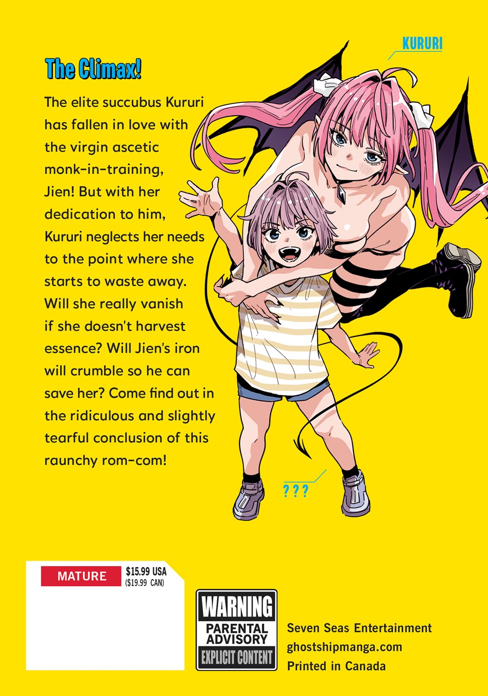 The elite succubus Kururi has fallen in love with the virgin ascetic monk-in-training, Jien! But with her dedication to him, Kururi neglects her needs to the point where she starts to waste away. Will she really vanish if she doesn't harvest essence? Will Jien's iron will crumble so he can save her? Come find out in the ridiculous and slightly tearful conclusion of this raunchy rom-com!