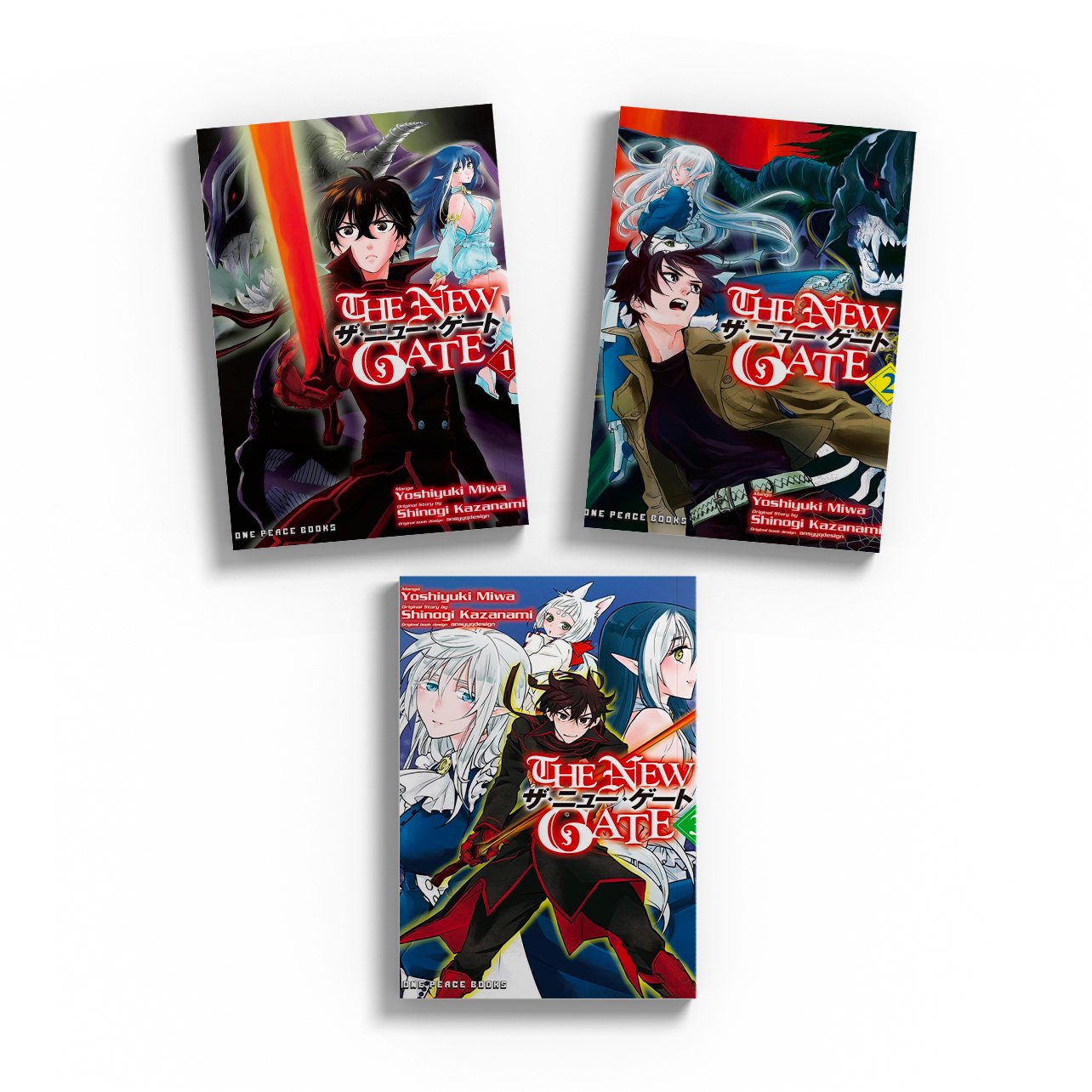 The New Gate manga volume 1 features story by Shinogi Kazanami and art by Yoshiyuki Miwa.