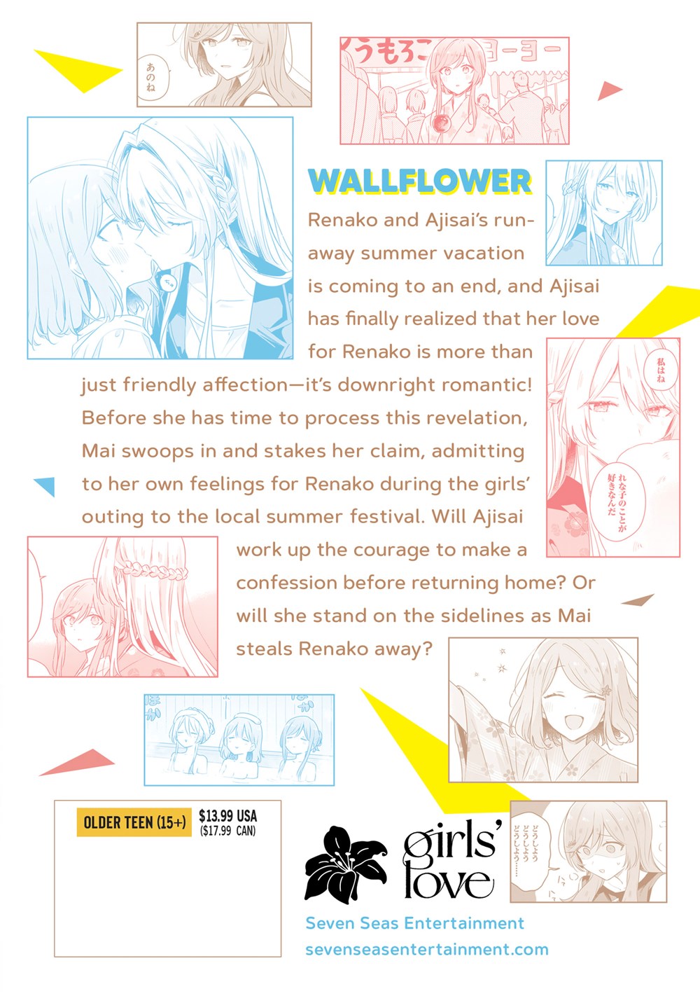 Renako and Ajisai's runaway summer vacation is coming to an end, and Ajisai has finally realized that her love for Renako is more than just friendly affection—it's downright romantic! Before she has time to process this revelation, Mai swoops in and stakes her claim, admitting to her own feelings for Renako during the girls' outing to the local summer festival. Will Ajisai work up the courage to make a confession before returning home? Or will she stand on the sidelines as Mai steals Renako away?