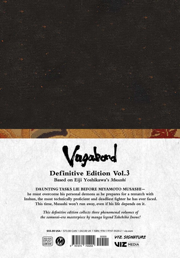 Vagabond Definitive Edition Manga Omnibus Volume 3 (Hardcover) collects volumes 7-9 of the manga, featuring story and art by Takehiko Inoue.