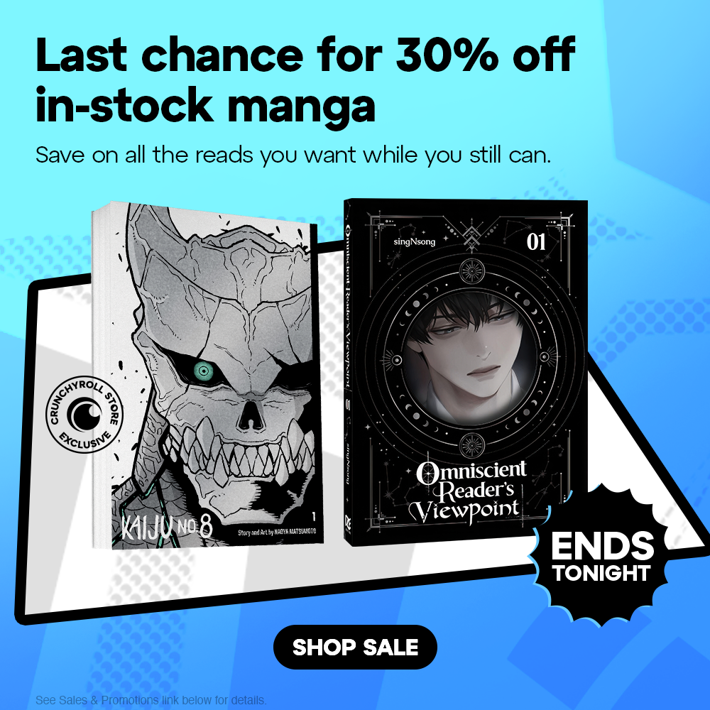 Manga Publisher Sale ends 3/15/26 11:59 PM PT. Discounts are only applicable to products found on this page, and for a limited time while supplies last. Discounts do not apply to pre-order items, Gift Cards, and Membership Cards. Premium membership discounts do not apply. Items marked “final sale” not eligible for returns/exchanges. Not valid on prior purchases.