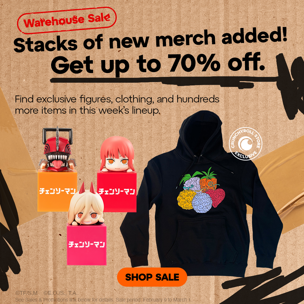 Warehouse Sale ends 3/1/26 11:59 PM PT. Discounts are only applicable to products found on this page, and for a limited time while supplies last. Discounts do not apply to pre-order items, Aniplex items, Gift Cards, and Membership Cards. Premium membership discounts do not apply. Items marked “final sale” not eligible for returns/exchanges. Not valid on prior purchases.